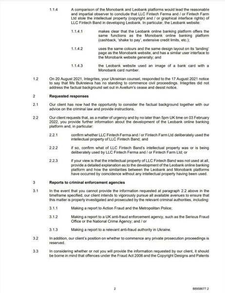 В документе приводятся доказательства адвокатов касательно хищения интеллектуальной собственности "Монобанка", а именно:
