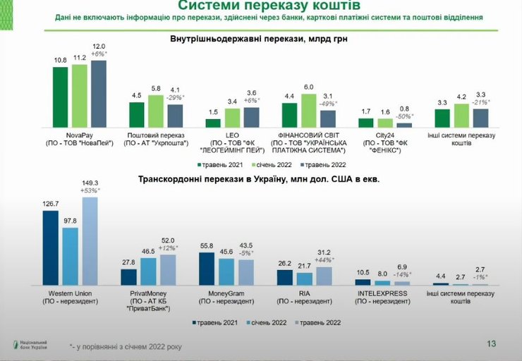 "В целом у всех основных игроков (занимающихся переводами по Украине – ред.) наблюдается уменьшение количества переводов и их объемов, но есть два крупнейших участника, у которых произошел рост. Это МПС LEO и NovaPay", — сообщил Директор Департамента платежных систем и инновационного развития НБУ.
