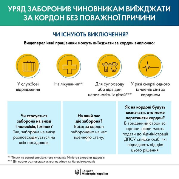Как будет действовать недавний резонансный запрет выезда за границу для украинских чиновников, судей, прокуроров, депутатов Верховной Рады и др. проясняет новое постановление Кабмина от 27 января 2023 года №69 "О внесении изменений в Правила пересечения государственной границы гражданами Украины".