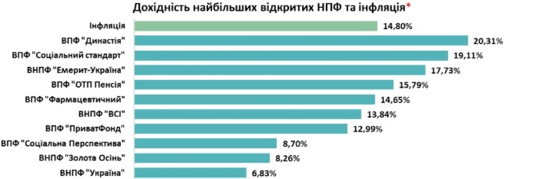 * прогнозная годовая доходность НПФ на основе данных за 6 месяцев 2023 года и прогнозная годовая инфляция на 2023 год от НБУ. Данные: УАИБ, ICU