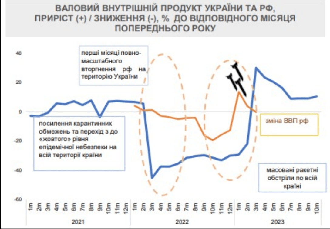 Важно"В октябре 2023 года продолжалась положительная динамика ВВП. С одной стороны, высокая урожайность в сельском хозяйстве и благоприятная погода, и, соответственно, высокие темпы уборки урожая, стабильная ситуация в энергетике, работа временного коридора для движения гражданских судов в порты Большой Одессы, предложение товаров и услуг стимулировало динамику ВВП", — сказано в сообщении.