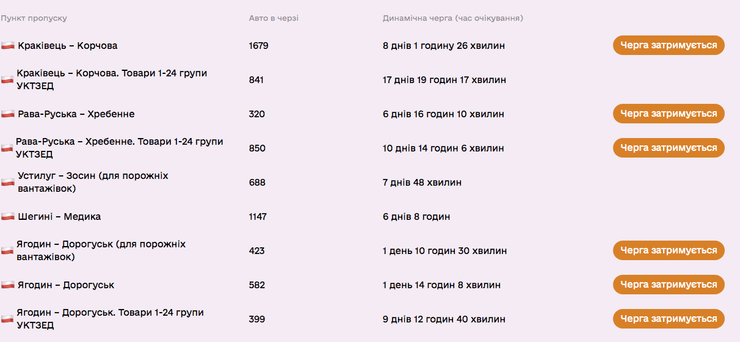 "Протестующие намерены пропускать по три грузовика в час. Легковые автомобили, автобусы, транспортные средства с гуманитарной помощью, а также транспортные средства до 3,5 тонны в обоих направлениях будут оформляться в обычном режиме", — уточняют пограничники.