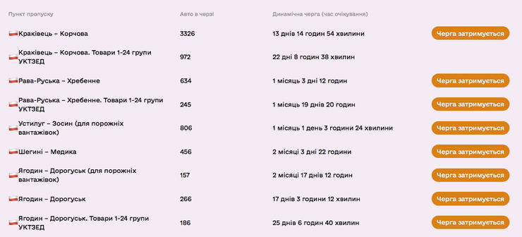 "Единственное отличие — они вообще не пропускают грузовые транспортные средства, которые следуют из Украины в сторону Польши через ПП "Шегини – Медика" и "Ягодин – Дорохуск", — отметил спикер ГПСУ.