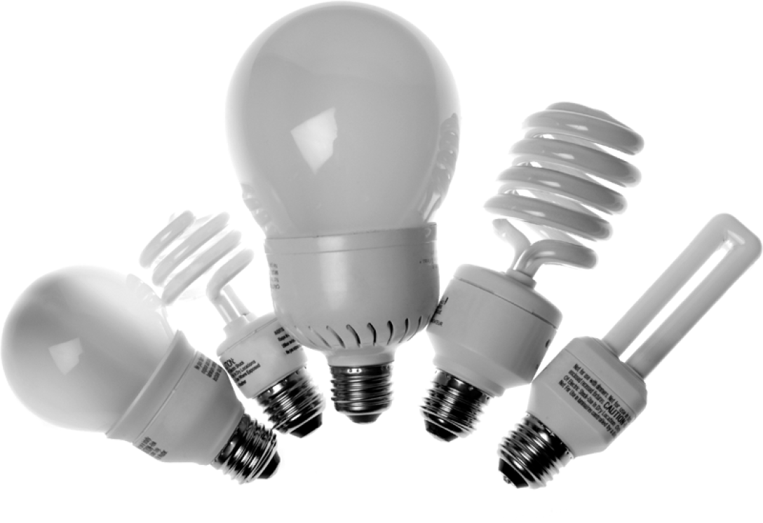 Компактные люминесцентные лампы работают в 10 раз дольше, чем традиционные лампы накаливания, но их полная мощность достигается лишь через 30 секунд, стоят от 67 грн за шт (в зависимости от компактности), а также плохо переносят постоянные включения/выключения электроэнергии, и крайне плохо служат при повышенных температурах.