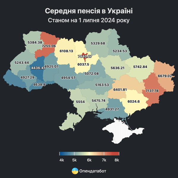 В 2024 году средняя пенсия в Украине увеличилась на 8% и составляет 5 816 гривен. Тогда как самые высокие выплаты граждане после выхода на заслуженный отдых получают в Киеве, а самые низкие на Тернопольщине. Об этом сообщили на сайте Опендатабот.