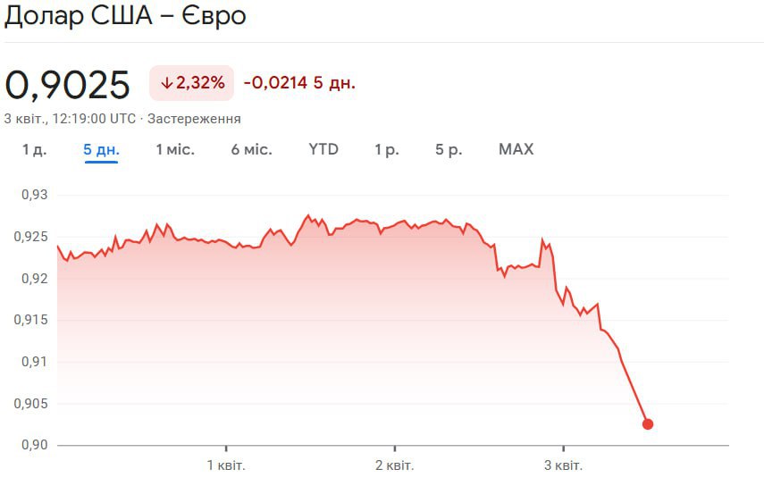 Евро продемонстрировал рекордный рост более чем на 2% по отношению к доллару, что стало его самым успешным днем за последние девять лет. Причиной такого скачка стало заявление бывшего президента США Дональда Трампа о введении более жестких, чем ожидалось, тарифов на импорт, что вызвало беспокойство на финансовых рынках. Об этом сообщает издание Reuters.