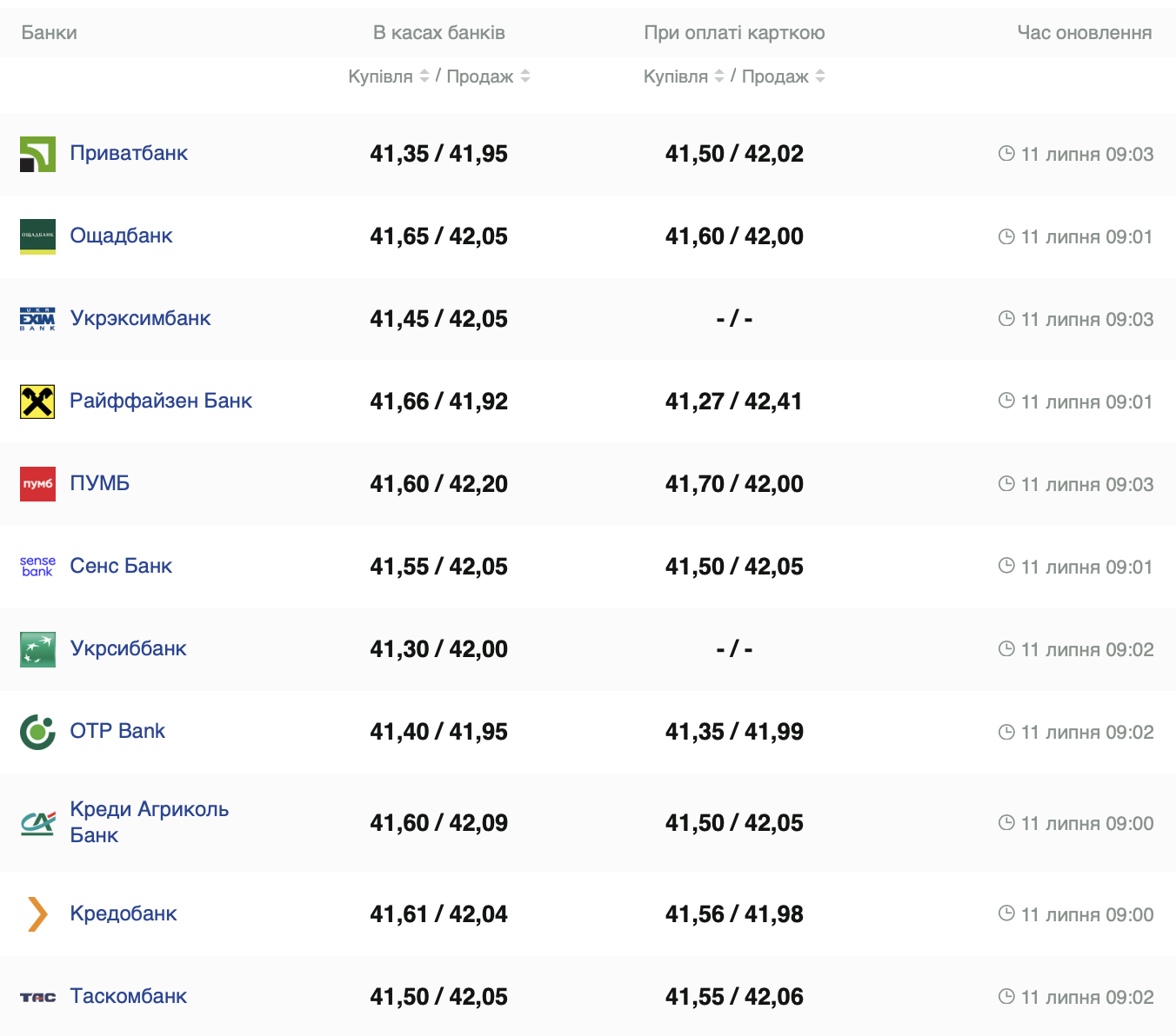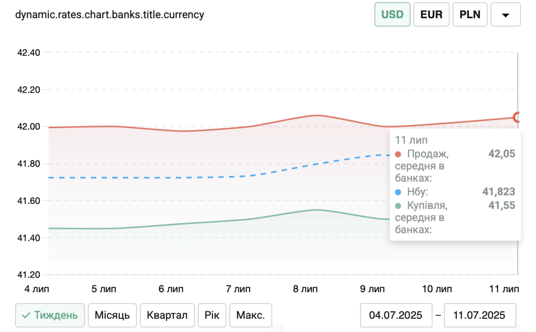 Курс валют на 11 июля: доллар по 42 грн