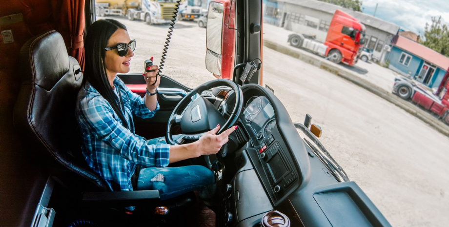 женщина за рулем, грузовик