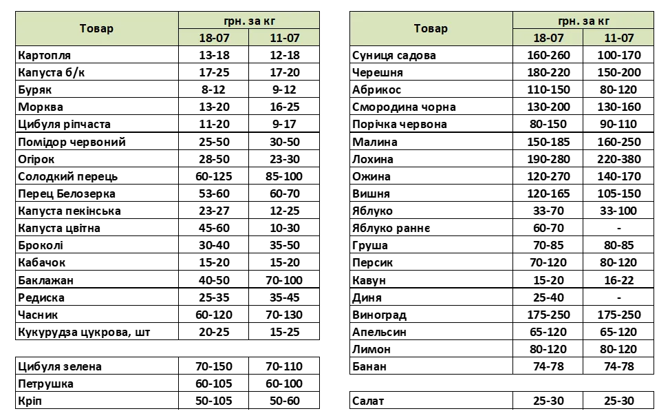 Активный рост продаж моркови способствовал снижению ее цены — с 16-25 до 13-20 грн/кг. В то же время белокочанная капуста продолжает дорожать — с 17-20 до 17-25 грн/кг, что обусловлено ограниченным предложением. Аналогичная тенденция наблюдается и на рынке лука: его цена выросла с 9-17 до 11-20 грн/кг.