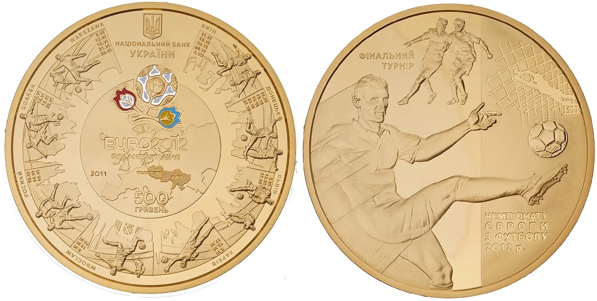 Специальная монета к чемпионату "Евро-2012" изготовлена из золота, и весит 0,5 кг. Их было выпущено всего 110 штук и все они находятся у коллекционеров.