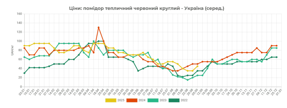 Несмотря на нынешнее подорожание, тепличный помидор в Украине все еще стоит в среднем на 25% дешевле, чем в начале сентября 2024 года.