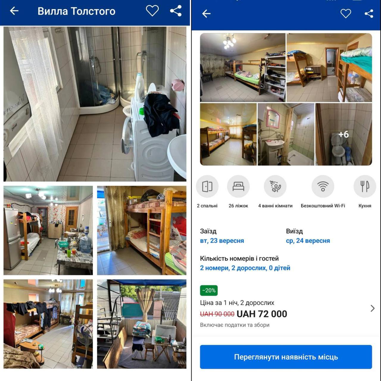 Одна ночь в номере с восемью кроватями в Умани стоит 72 тысячи гривен, сообщают местные Telegram-паблики и публикуют соответствующие скриншоты с расценками. Причем 72 тысячи — это уже цена с 20-процентной скидкой (ведь изначально была указана стоимость 90 тысяч гривен).