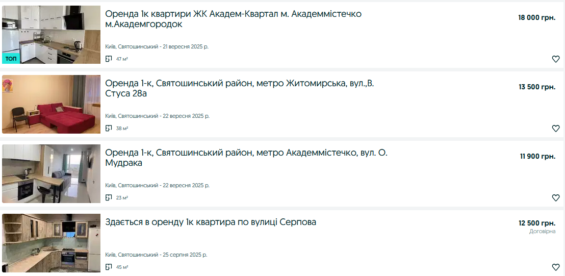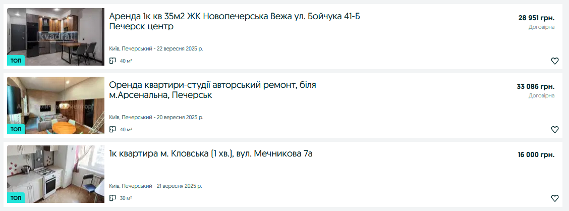 Лидером по дороговизне традиционно остается Печерский, где аренда однокомнатной квартиры в среднем обходится в 35 900 грн. На другом полюсе — Деснянский район, где жилье можно снять примерно за 10 000 грн, что делает его самым доступным в столице.