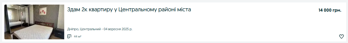 Средняя стоимость аренды однокомнатной квартиры в Днепровском районе — 10–12 тысяч гривен.