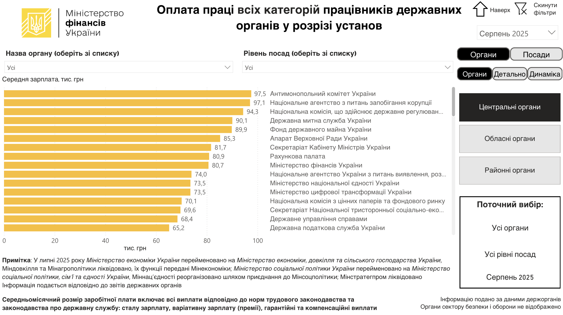 Аппарат Рады занял в рейтинге лишь восьмое место, кто и вошел в первую десятку. Об этом свидетельствуют данные Министерства финансов Украины о том, какую среднюю зарплату за август 2025 года получало руководство государственных органов.