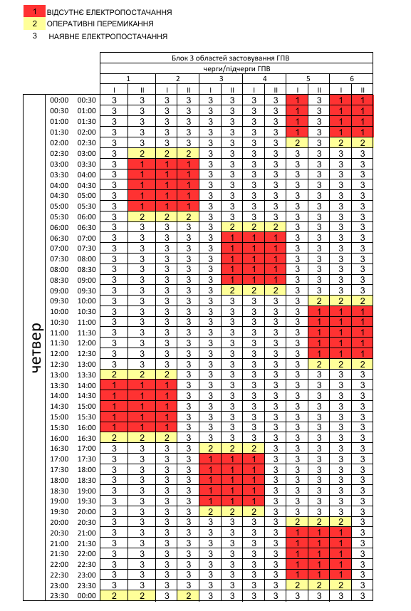 Графики отключения света в Черкасской области в соответствии с информацией на сайте АО "Черкассыоблэнерго" имеет такой вид: