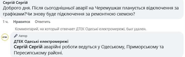 В комментариях на странице ДТЭК Одесские электросети абоненты пишут о том, что света нет сутками.