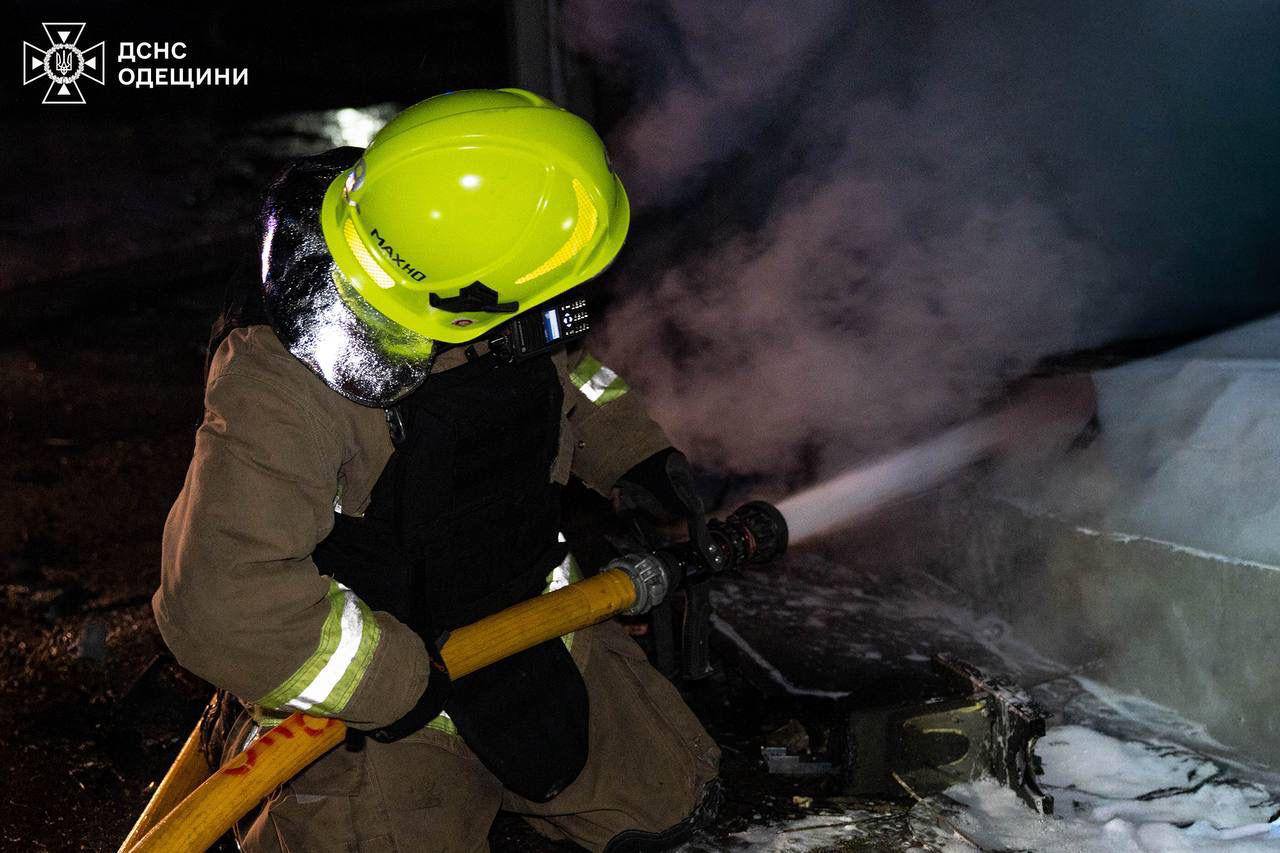 Спасатели тушат пожар после прилета по энергообъекту в Одесской области