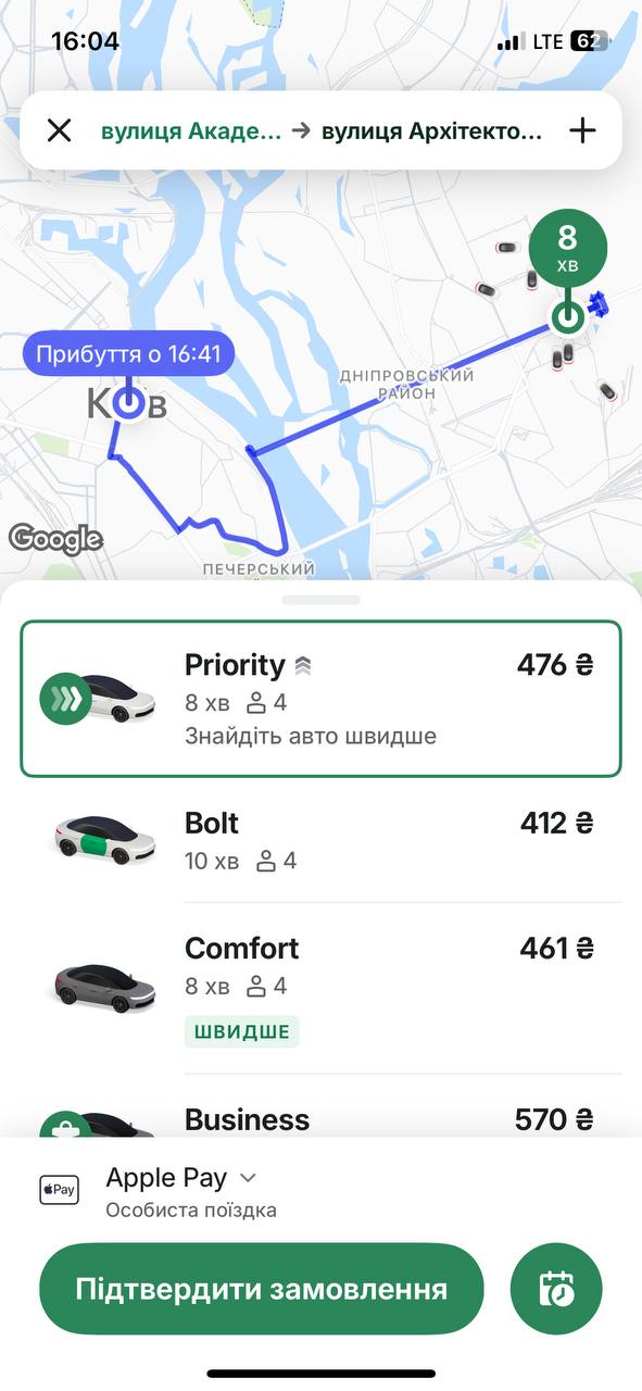 Добавим, что в 16:00 ситуация с ценами на такси в Киеве несколько стабилизировалась, поэтому можно было заказать авто по тому же маршруту значительно дешевле.