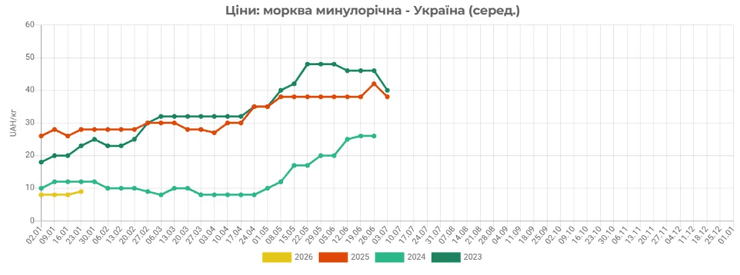 На сегодняшний день украинские фермеры готовы отгружать морковь не дешевле чем по 6–12 грн/кг ($0,14–0,28/кг), сообщает EastFruit.