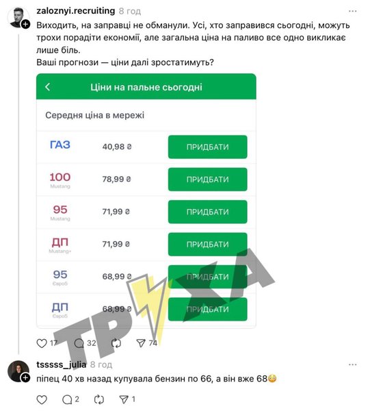Зато их публикуют автовладельцы в соцсетях. Сегодня, согласно опубликованным скринам, стоимость топлива выросла минимум на 2 гривны.