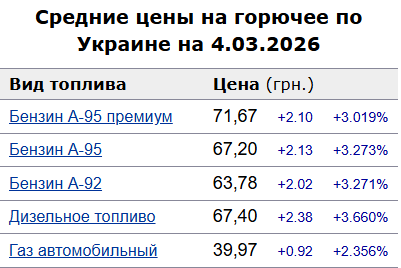 Средние цены на топливо на АЗС Украины 4 марта