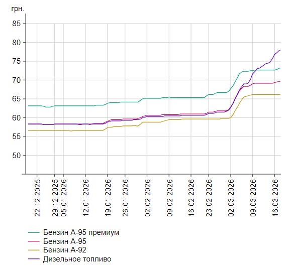 Параллельно правительство привлекло государственную "Укрнафту", чтобы стабилизировать бензин на АЗС — компанию обязали продавать топливо с минимальной наценкой. Частично это дало эффект: после 5 марта подорожание бензина замедлилось и цены начали расти уже не гривнами, а копейками. В то же время дизельное топливо продолжает дорожать быстрыми темпами.