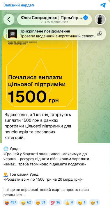 Как известно, Кабинет Министров Украины 18 марта 2026 года принял постановление №341 о выплате единовременной целевой денежной помощи в размере 1500 гривен отдельным категориям граждан.