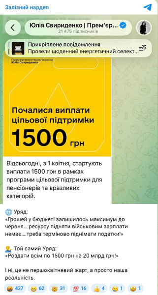 С 1 апреля в Украине стартуют выплаты 1500 грн в рамках программы целевой поддержки для пенсионеров и уязвимых категорий.