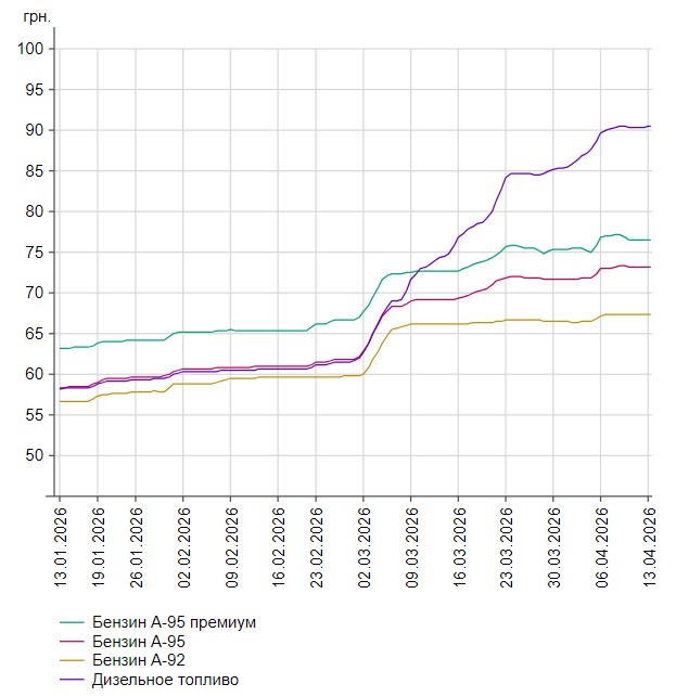 - бензин А-95 премиум — 76,55 грн/л (-0,01);