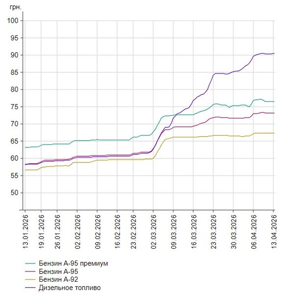 Государственный оператор "Укрнафта" реализует топливо с минимальной наценкой в соответствии с правительственным поручением. Ориентировочно 14 апреля цены на его АЗС будут такими:
