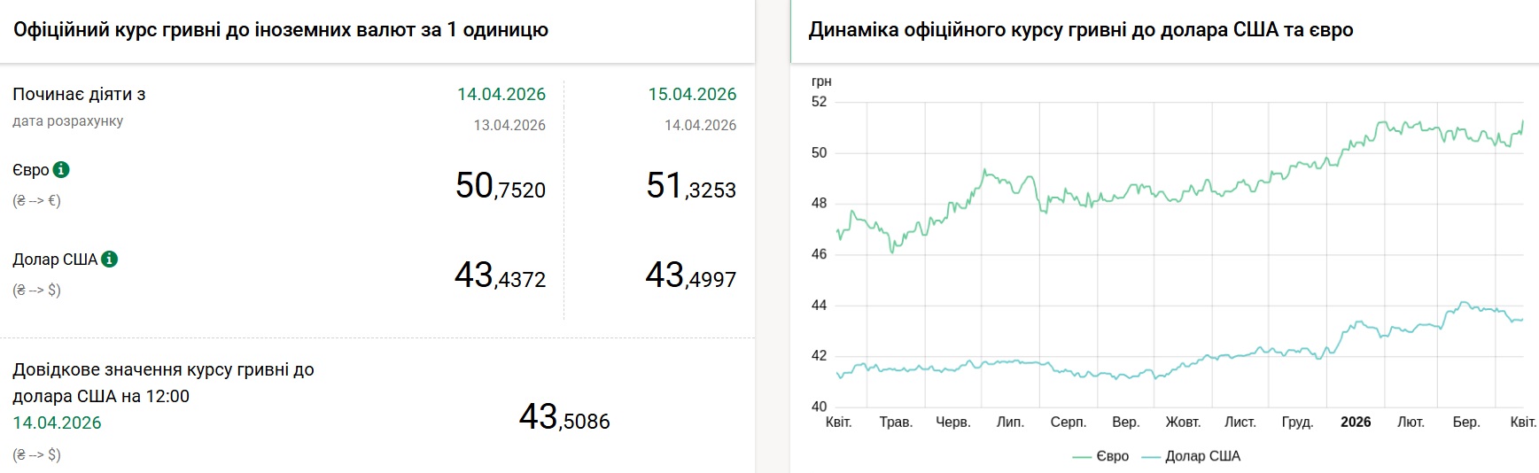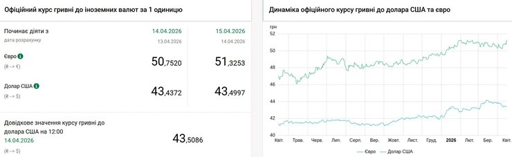 В среду курс евро составит 51,32 грн, говорится на сайте Национального банка Украины. Сегодня, 14 апреля, евро стоит 50,75 грн.