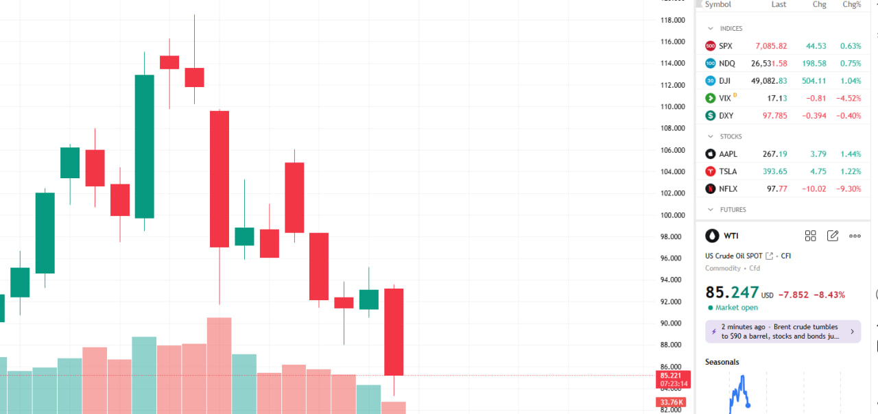 Другая марка нефти, US Crude Oil Spot снизилась еще больше — до 85 долларов.