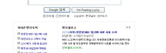 Google в Южной Корее отказался от минималистского дизайна своей домашней страницы. На главную страницу под строку поиска вынесены блоки с темами и новостями, популярными среди местных Интернет-пользователей