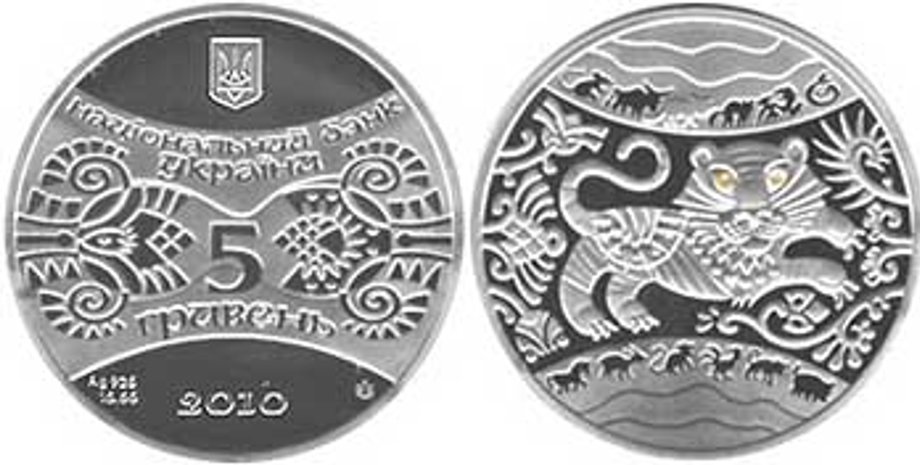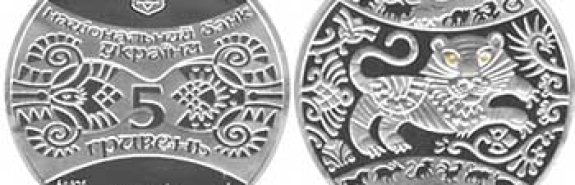 Нацбанк Украины с 5 января вводит в обращение памятную монету "Год Тигра" номиналом 5 гривен из серии "Восточный календарь". Монета выпущена тиражом 20 тыс. штук