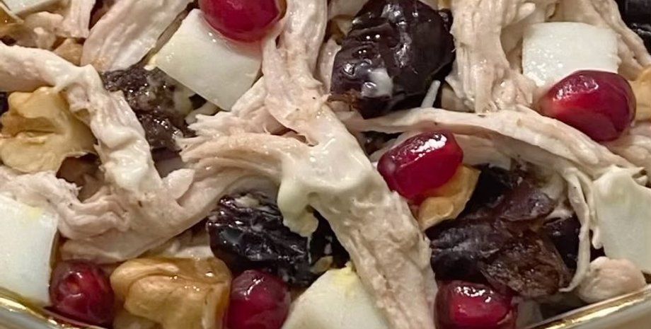 Сочетания куриного мяса, зерен граната и чернослива дает потрясающий вкус. Салат из таких ингредиентов станет хитом любого праздничного стола. Приготовить его очень легко, если воспользоваться рецептом кулинарного блогера Кристины Азизян.