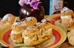 Пирожные эклеры всегда едят ножом и вилкой. Резать пирожное нужно очень аккуратно, чтобы начинка не вылезла наружу.