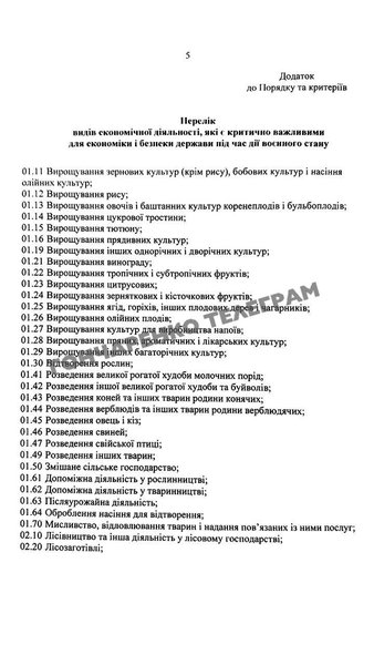 Кабинет Министров Украины планирует обновить перечень критически важных для экономики и безопасности страны видов деятельности во время военного положения. Полный список опубликовал народный депутат от "Европейской солидарности" Алексей Гончаренко.