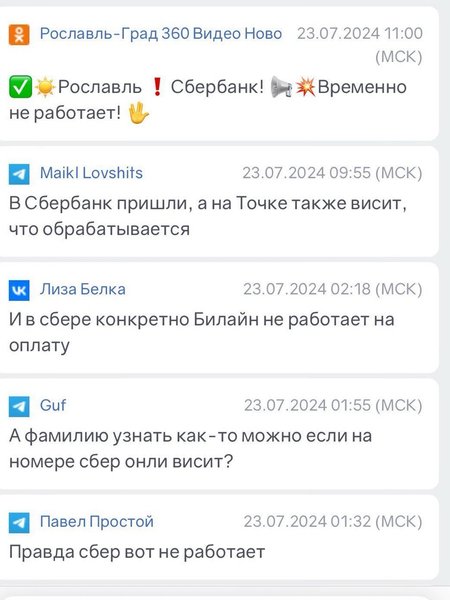 "Пользователи на всей территории РФ жалуются на то, что не могут воспользоваться цифровыми услугами сразу ряда основных банковских учреждений РФ. В частности, онлайн-сервисы не работают или существенно деградировали в "Альфа-банке", "Сбербанке", "Райффайзен банке", "ВТБ Банке", "РСХБ Банке", "Газпромбанке", "Т-Банке", онлайн-банкинге iBank", — отметили источники.