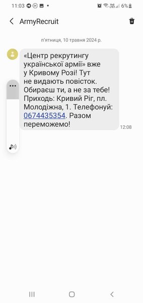"Говорить, что после таких сообщений был наплыв людей, желающих служить в ВСУ, я не могу. Я лично считаю рассылку неэффективной. После них к нам начали приходить люди, но с жалобами и возмущениями, что мы им присылаем сообщения. Потому что такие СМС поступали людям разного возраста, в частности, пенсионерам. Пришлось нам много чего выслушивать", — рассказывает работник рекрутингового центра в Днепре Игорь.
