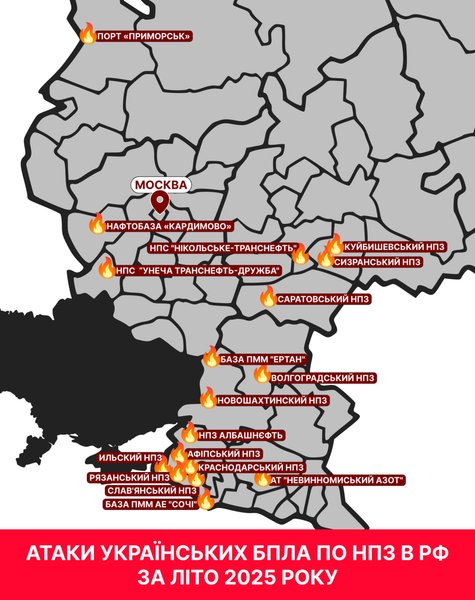 "Кроме того, Россия до сих пор способна производить достаточное количество топлива, поскольку одни из самых мощных НПЗ, расположенные в Сибири, пока не пострадали. А их совокупная мощность — это десятки миллионов тонн. Поэтому мы должны продолжать развивать дальнобойные способности и наносить удары по нефтяному сектору, чтобы топливо в стране-бензоколонке наконец закончилось", — добавляет эксперт.