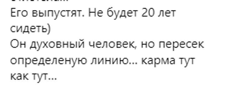 "Его выпустят. Не будет 20 лет сидеть. Он духовный человек, но пересек определеную линию. Карма тут как тут… Придется от чего-то отказаться, что-то потерять добровольно или под влиянием внешних сил".