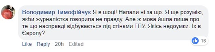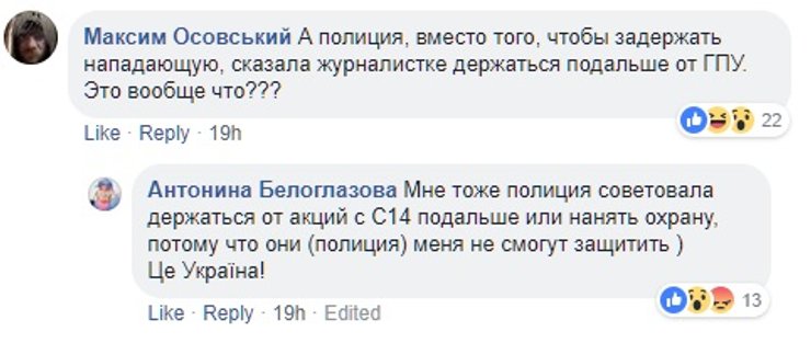 Пока официальные лица Нацполиции отмалчиваются, в соцсетях событие бурно обсуждают. Некоторые солидарны с Артемом Шевченко и считают, что Билера получила по заслугам.
