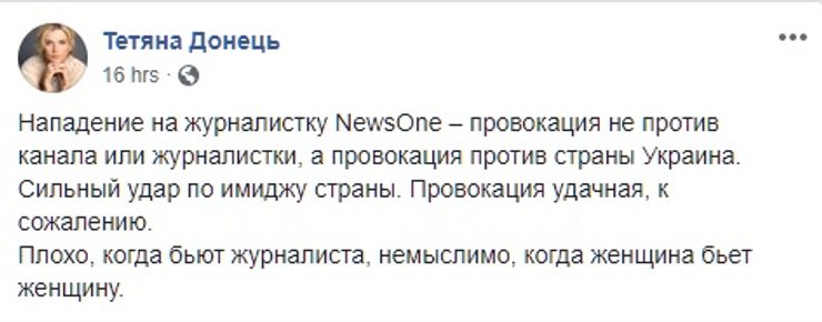 Первыми на инцидент отреагировали ее коллеги с канала. Появился пост от ведущей. Видео стали активно распространять в соцсетях коллеги-журналисты. Начали высказываться эксперты и народные депутаты.