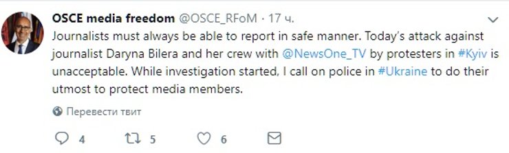 Нападение на Дарину Билеру прокоменнтировал официальный представитель ОБСЕ по свободе СМИ Арлем Дезир. Он отметил, что произошедшее абсолютно недопустимо, и призвал власти Украины полноценно расследовать этот инцидент.