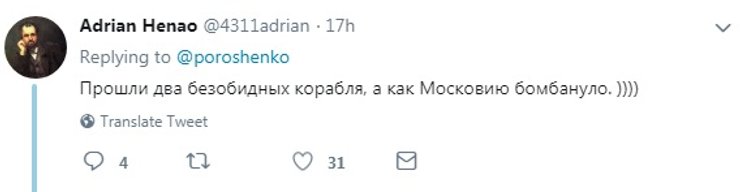 За проходом украинских кораблей под мостом с Таманского полуострова на крымский следили как в Украине, так и в России. ВМС Украины сообщили, что в Керченском проливе буксир и поисково-спасательный корабль сопровождали более десяти суден ФСБ и Черноморского флота РФ. Также рядом была российская военная авиация.