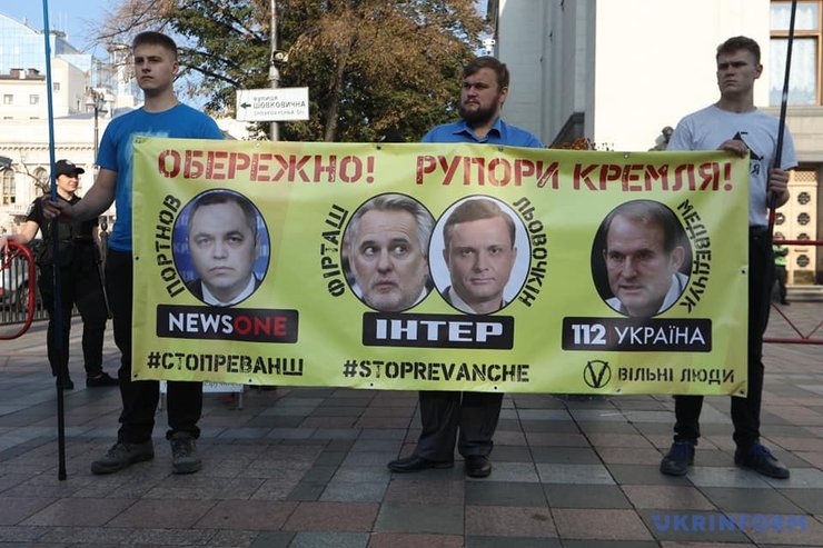 21 сентября под Верховной Радой Украины прошел флешмоб. Участники призывали депутатов, общественных деятелей и журналистов не сотрудничать с каналами "Интер", NEWSONE и "112 Украина". Во время акции организаторы раздавали листовки с лозунгами "Осторожно! Рупоры Кремля!".