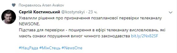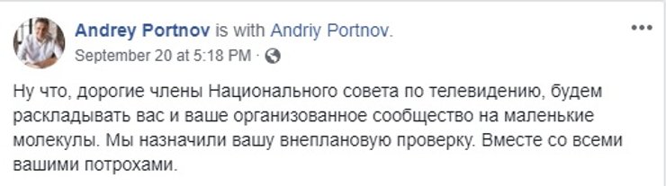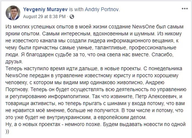 Канал NewsOne 29 августа 2018 года на три года перешел в управление Андрея Портнова, экс-заместителя главы Администрации президента-беглеца Виктора Януковича.
