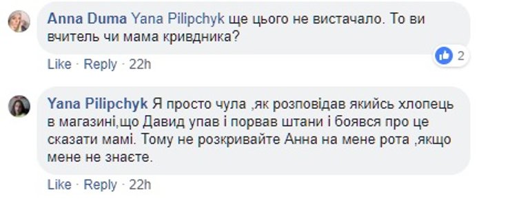 Местные СМИ также попытались разобраться в ситуации. Журналист газеты "Вечерние Черкассы" Сергей Радченко написал на Facebook, что "2 октября в больницу приходил отец одного из мальчиков, на которых указал Давид. Угрожал расправой подруге матери, чтобы та не распространяла неправдивую информацию".
