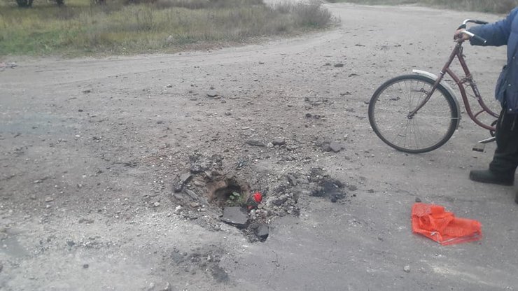 В Facebook появились фотографии застрявших в дороге снарядов. И разбитого осколками асфальта.
